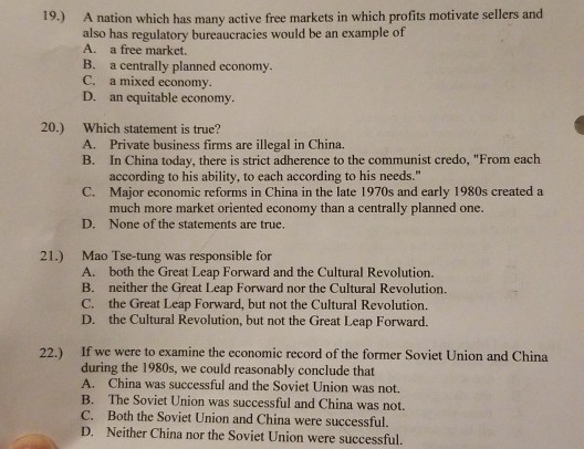 The Former Soviet Union Was An Example Of A A Planned Economy B Free Course Hero